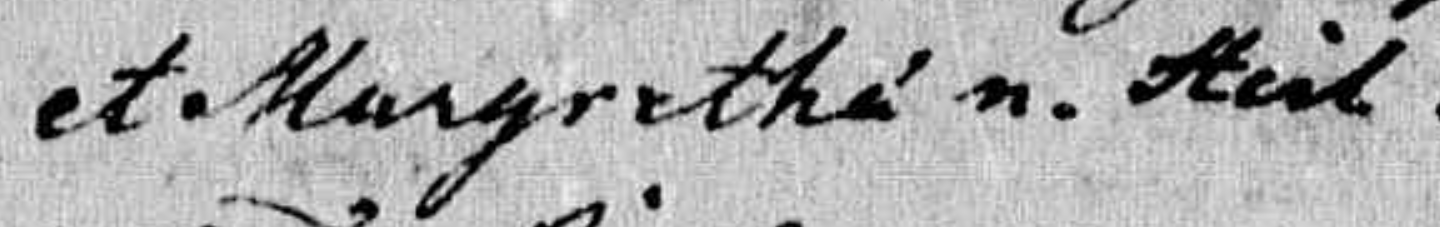 Margretha's surname is definitely "Heil". If you proceed forward just two pages, the next pastor's handwriting is much neater. You can also search the baptism records starting in 1821 or 1822 to find baptism records for these couples, or perhaps marriage records for other children of Johannes and Margretha (Heil) Muller.